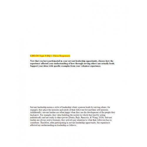 Now that you have participated in your servant leadership opportunity, discuss how the experience affected your understanding of how through serving others one actually leads. Support your ideas with specific examples from your volunteer experience.