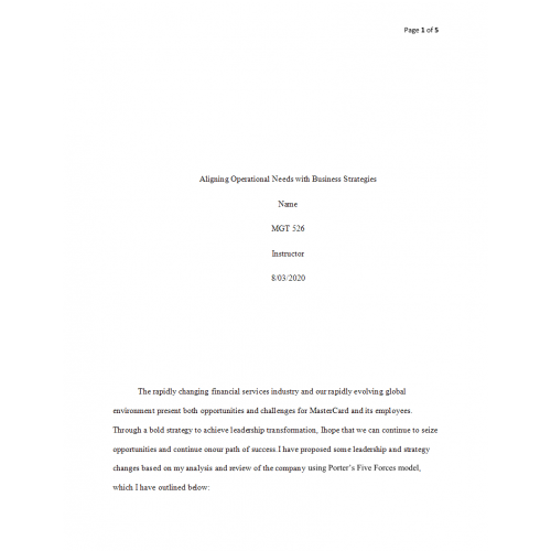 MGT 526 Week 3 Assignment, Aligning Operational Needs (MasterCard)