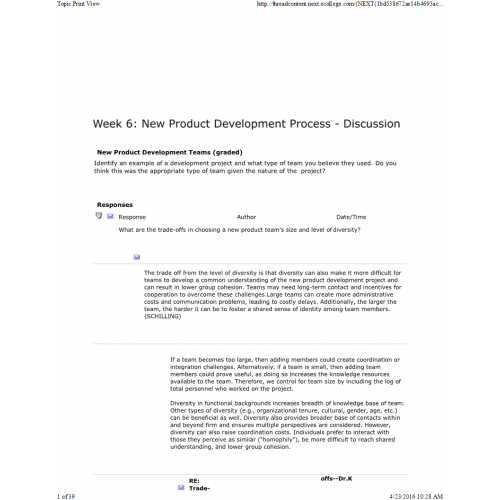 NETW 583 Week 6 Discussion 2, New Product Development Teams (Graded)