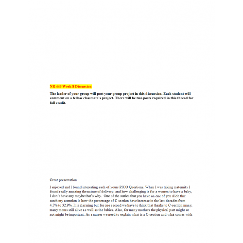 NR 449 Week 1 to 8, Assignment, Discussion Question - Complete