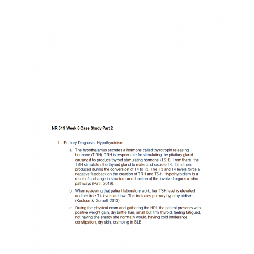 NR 511 Week 6 Case Study Part Two (Version 2)