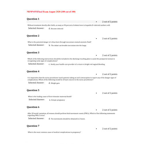 NRNP 6551 Final Exam (August 2020 - 100 out of 100)