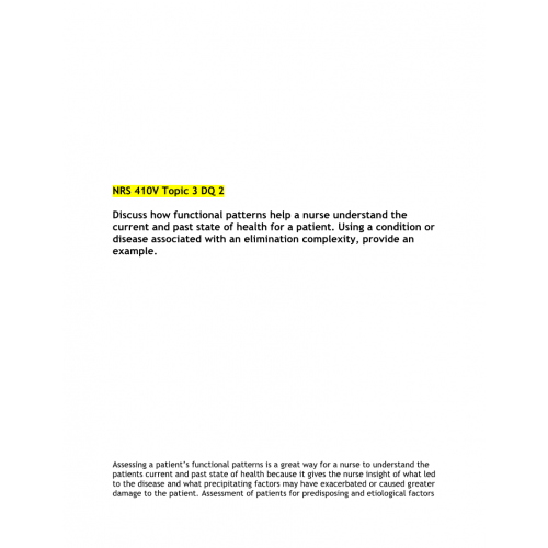 Discuss how functional patterns help a nurse understand the current and past state of health for a patient. Using a condition or disease associated with an elimination complexity, provide an example.