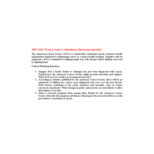 NRS 410V Week 2 Discussion Question; The American Cancer Society