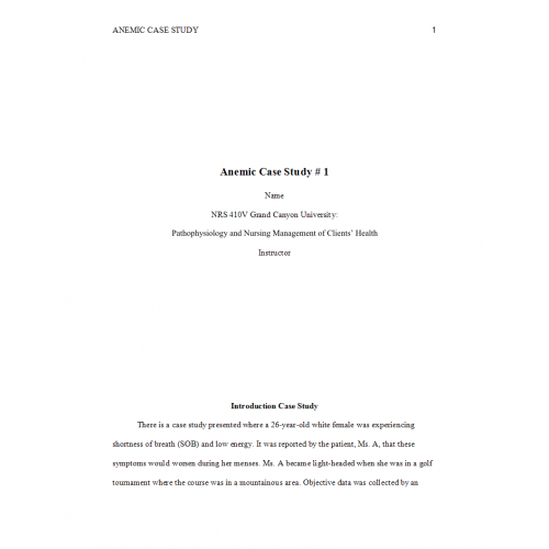 NRS 410V Week 3 Assignment, Case Study; Anemia