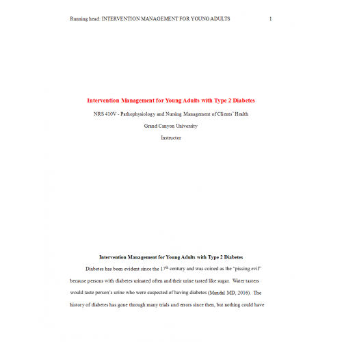 NRS 410V Week 5 Benchmark Assignment, Evidence-Based Practice Project; Diabetes 1