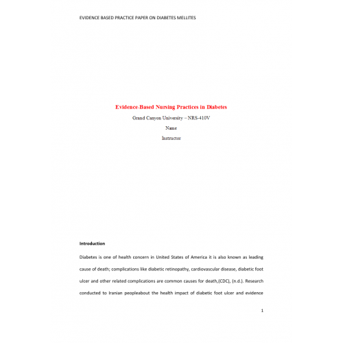 NRS 410V Week 5 Benchmark Assignment, Evidence-Based Practice Project; Diabetes 2