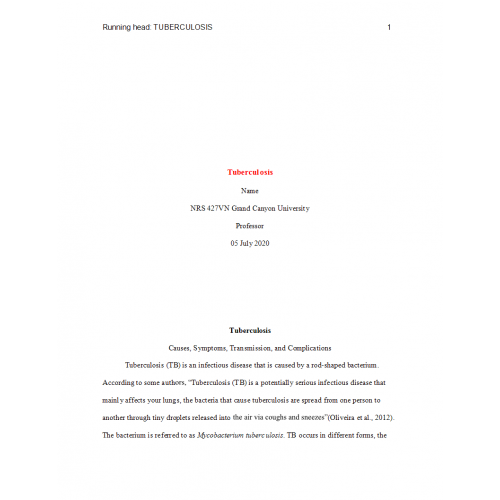 NRS 427VN Topic 2 Benchmark Assignment, Epidemiology Paper - Tuberculosis