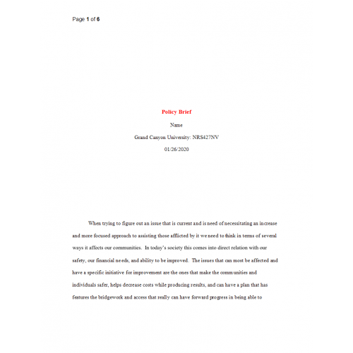 NRS 427VN Topic 4 Policy Brief Paper - Mental Health