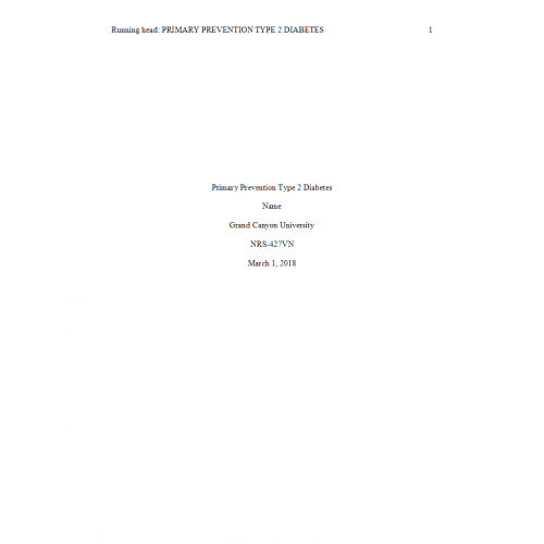 NRS 427VN Topic 5 Assignment, Community Teaching Plan - Primary Prevention Type 2 Diabetes