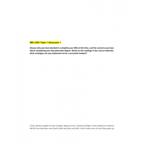 Discuss why you have decided to complete your BSN at this time, and the concerns you have about completing your baccalaureate degree. Based on the readings in the course materials, what strategies can you implement to be a successful student?