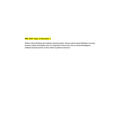 Define critical thinking and evidence-based practice. Discuss what critical thinking in nursing practice entails and explain why it is important. Discuss the role of critical thinkingand evidence-based practice as they relate to patient outcomes.