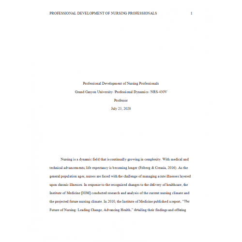 NRS 430V Topic 4 Assignment, Professional Development of Nursing Professionals