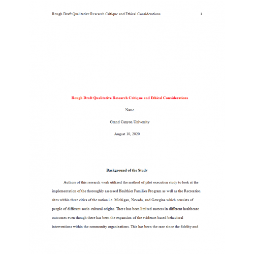 NRS 433V Week 2 Assignment, Rough Draft Qualitative Research Critique and Ethical Considerations