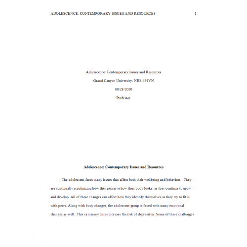 NRS 434VN Week 3 Assignment, Adolescence: Contemporary Issues and Resources