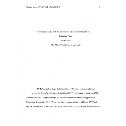 In a reflection of 450-600 words, explain how you see yourself fitting into the following IOM Future of Nursing recommendations: