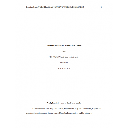 NRS 440VN Week 5 Assignment Combining Nurse Leader With Advocacy