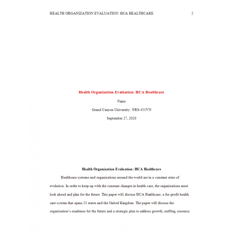 NRS 451VN Week 5 Assignment, Health Organization Evaluation - HCA Healthcare