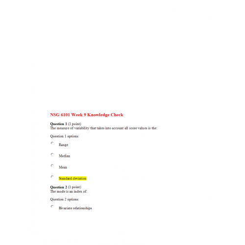 NSG 6101 Week 9 Knowledge Check