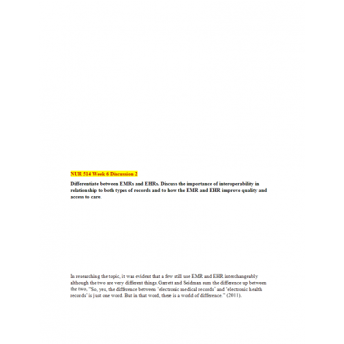 Differentiate between EMRs and EHRs. Discuss the importance of interoperability in relationship to both types of records and to how the EMR and EHR improve quality and access to care.