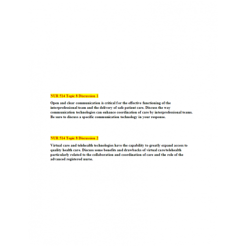 • NUR 514 Week 8 Discussion 1 and 2 with Answers