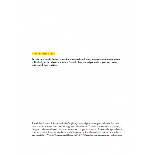 In your own words, define translational research and how it connects to your role, either individually or in collective practice. Describe how you might use it in your current or anticipated future setting.