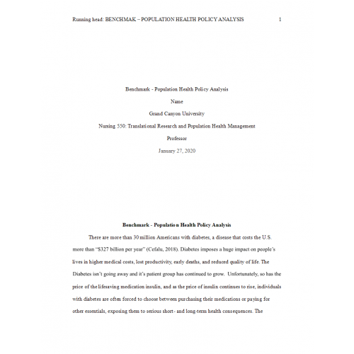 NUR 550 Topic 8 Benchmark - Population Health Policy Analysis 1