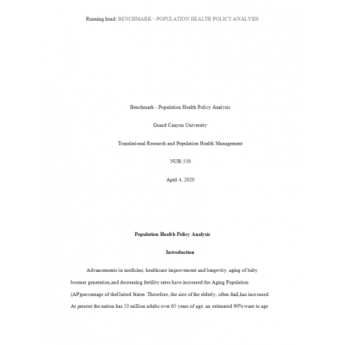 NUR 550 Topic 8 Benchmark - Population Health Policy Analysis