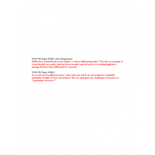 NUR 550 Topic 8 Discussion Question 1 and 2