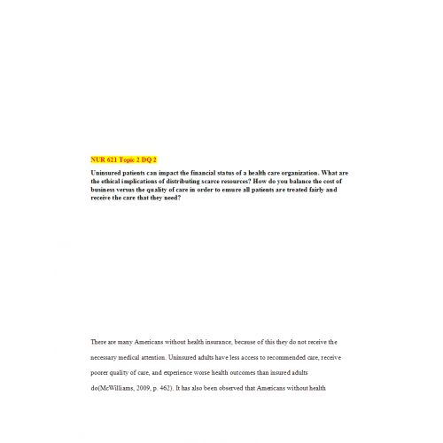 Uninsured patients can impact the financial status of a health care organization. What are the ethical implications of distributing scarce resources? How do you balance the cost of business versus the quality of care in order to ensure all patients are treated fairly and receive the care that they need?