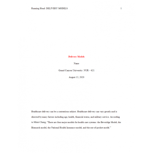 NUR 621 Week 3 Assignment, Delivery Models Essay