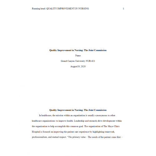 NUR 621 Week 5 Assignment, Quality Improvement in Nursing