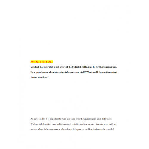 You find that your staff is not aware of the budgeted staffing model for their nursing unit. How would you go about educating/informing your staff? What would the most important factors to address?