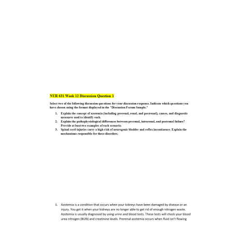 NUR 631 Week 12 Discussion Question 1