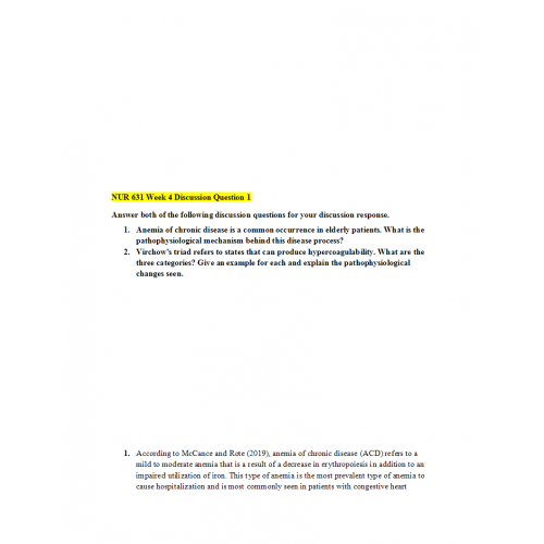 - Virchow's triad refers to states that can produce hypercoagulability. What are the three categories? Give an example for each and explain the pathophysiological changes seen.
