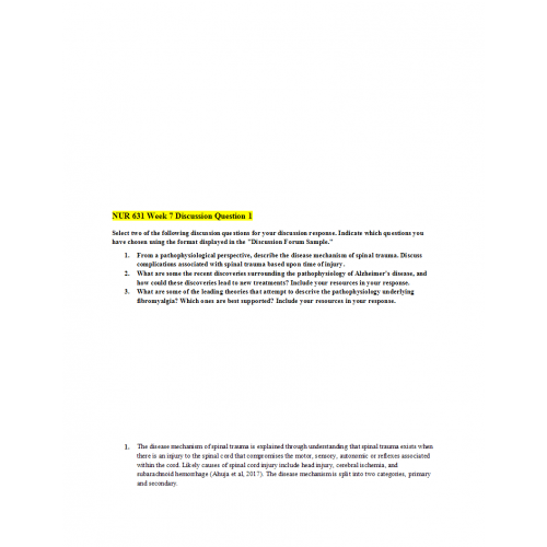 - From a pathophysiological perspective, describe the disease mechanism of spinal trauma. Discuss complications associated with spinal trauma based upon time of injury.