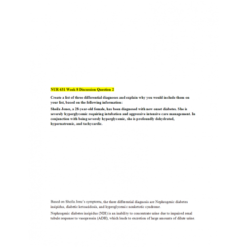 Sheila Jones, a 28-year-old female, has been diagnosed with new onset diabetes. She is severely hyperglycemic requiring intubation and aggressive intensive care management. In conjunction with being severely hyperglycemic, she is profoundly dehydrated, hypernatremic, and tachycardic.