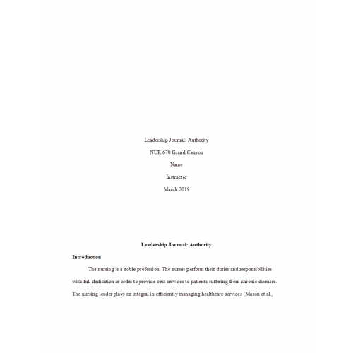 NUR 670 Week 5 Assignment, Leadership Journal - Authority 2