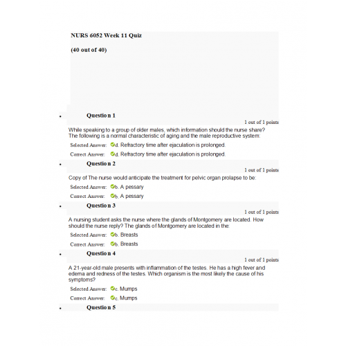 1. While speaking to a group of older males, which information should the nurse share? The following is a normal characteristic of aging and the male reproductive system: