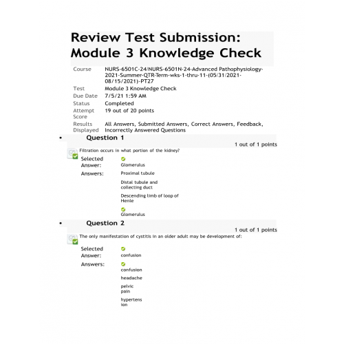 NURS 6501C-NURS 6501N Module 3 Knowledge Check (Summer 2021)