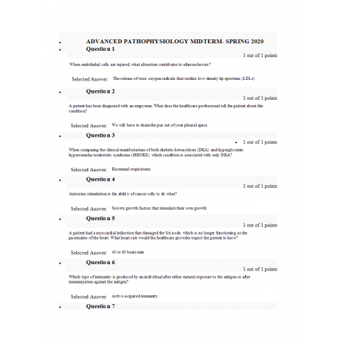 NURS 6501N Midterm Exam ADVANCED PATHOPHYSIOLOGY