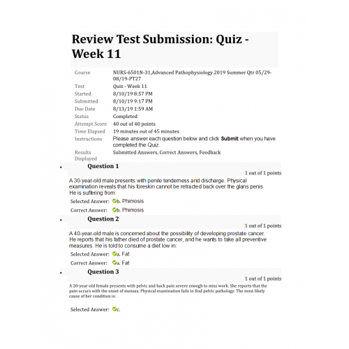 NURS 6501N Week 11 Quiz 4 (40 out of 40)