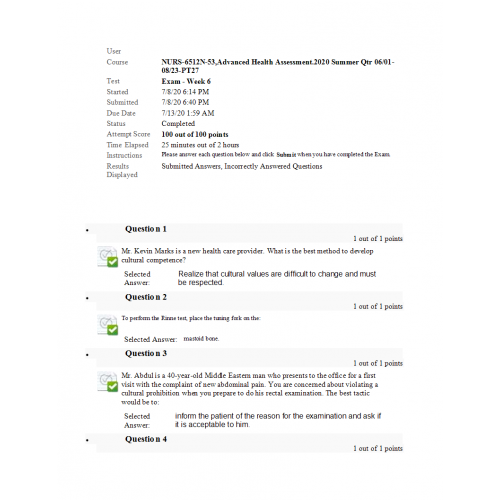 NURS-6512N-53,Advanced Health Assessment Exam - Week 6 (98 out of 100 points)