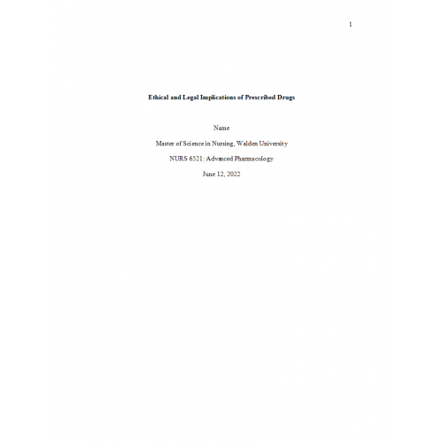 NURS 6521 Week 1 Assignment, Ethical and legal Implications of Prescribed Drugs