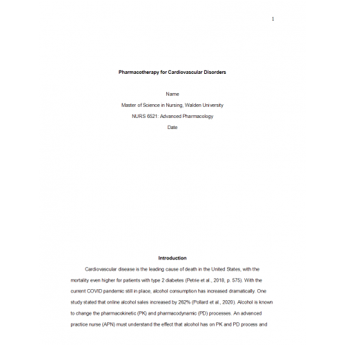 NURS 6521 Week 2 Assignment, Pharmacotherapy for Cardiovascular Disorders