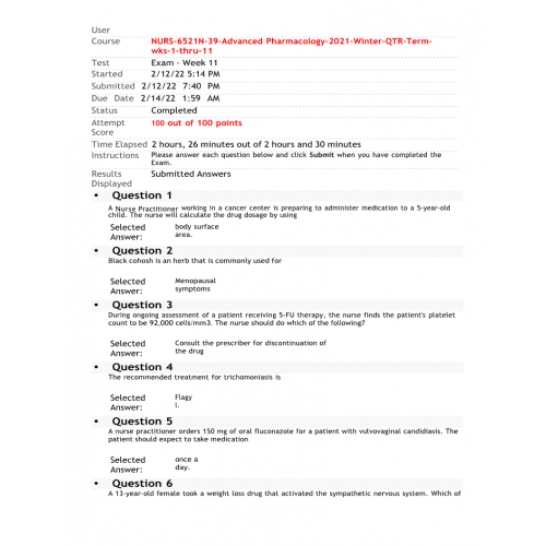 NURS 6521N-39 Final Exam (Feb 2022 - 100 out of 100)