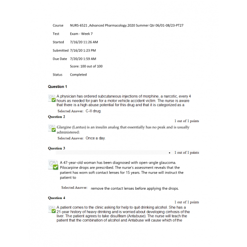 NURS-6521,Advanced Pharmacology Exam - Week 7