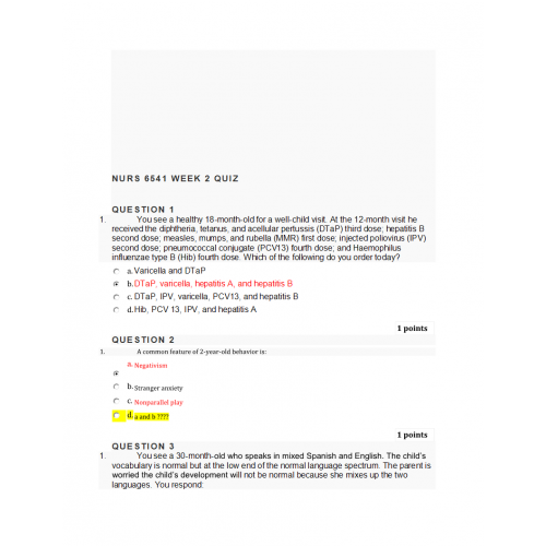 NURS 6541 Week 2 Quiz 1 - Question and Answers