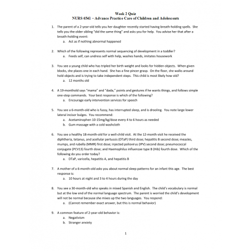 1. The parent of a 2-year-old tells you her daughter recently started having breath-holding spells. She tells you the older sibling “did the same thing” and asks you for help. You advise her that after a breath-holding event: