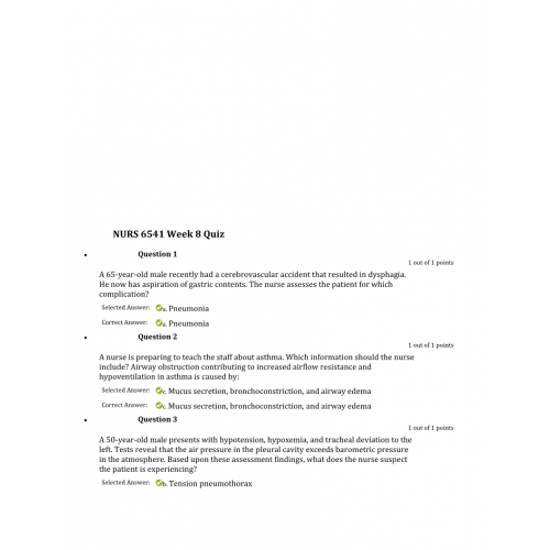 NURS 6541 Week 6 Quiz 3 - Question and Answers
